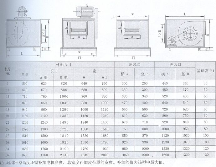 本系列产品分为A型和B型两种,电动机安装在箱体外的为A型,经耐高温实验,在烟气温度大于280℃高温情况下,能连续运转40分钟以上,达到消防排烟之目的,配用双速电机后,既可在低速时通风换气,又可在高速消防排烟,为一机两用;电动机安装在箱体内的为B型,一般作送排通风试用。